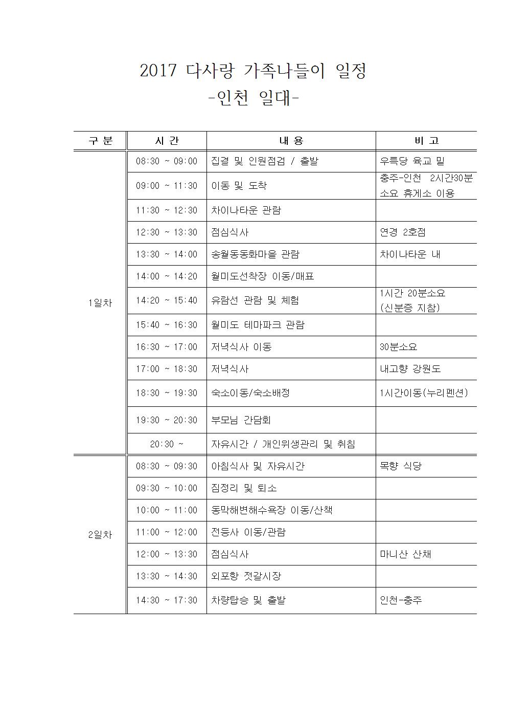 가족나들이 일정 안내해드립니다!