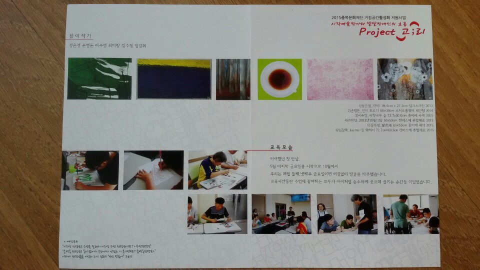 충북문화재단에서 후원하고 민예총 소관 '스튜디오 굳'에서 지원하는 "미술과 문화" 수업이 다사랑센터 이용인들을 대상으로