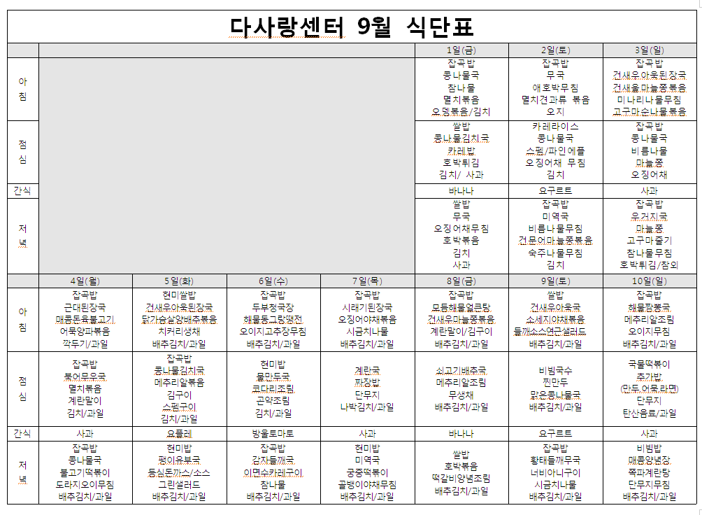* 위 식단표는 물품 수급 사정에 따라서 변경 될 수 있습니다.