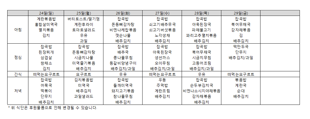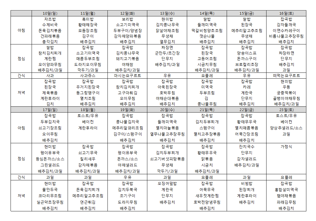 • 식단표