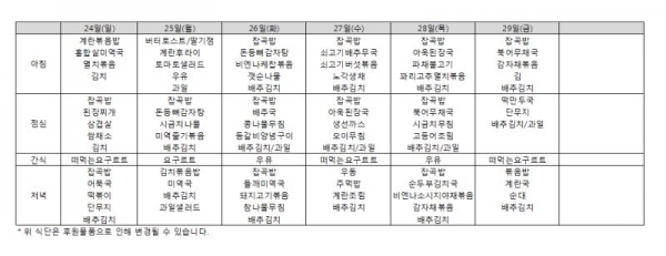 2017년 12월 식단표입니다.