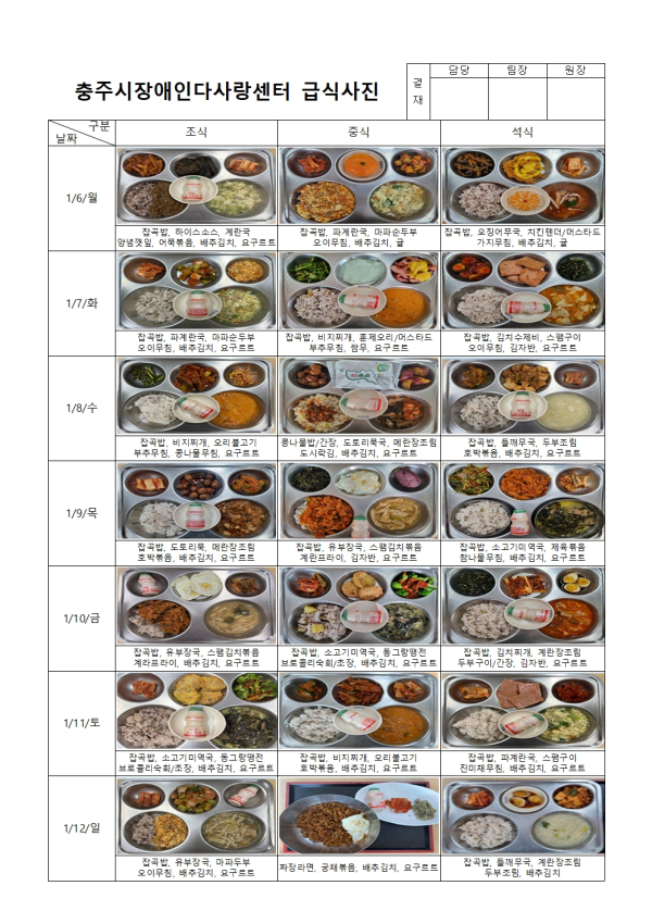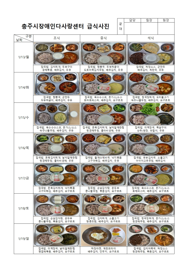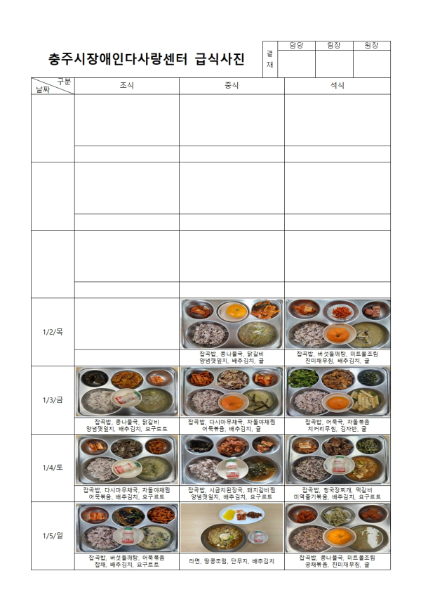 2025년 1월 급식사진