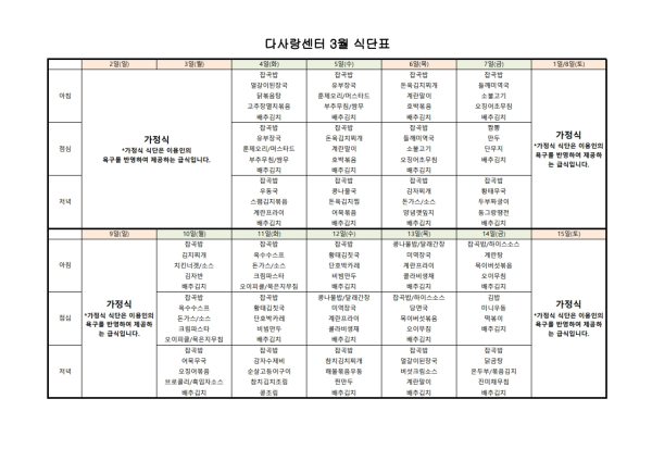 2025년 3월 식단표