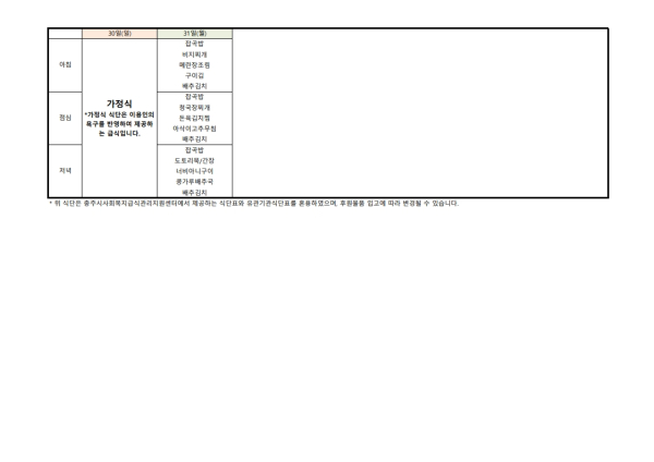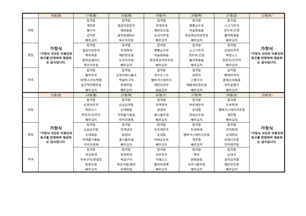 • 식단표
