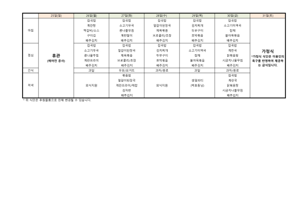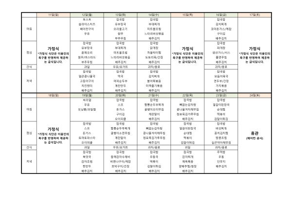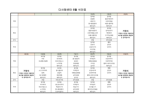 24년 8월 식단표