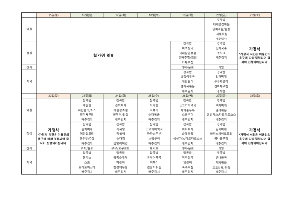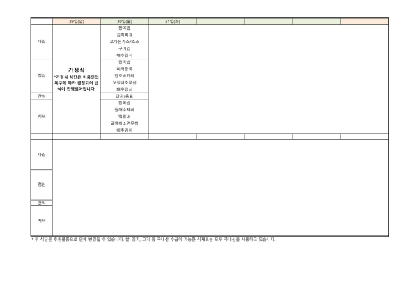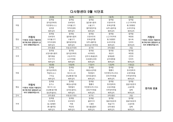24년 9월 식단표