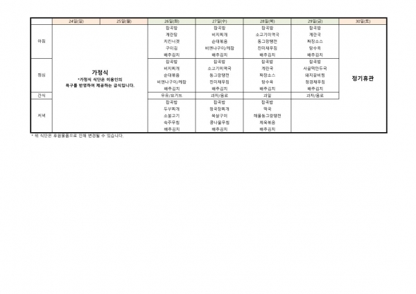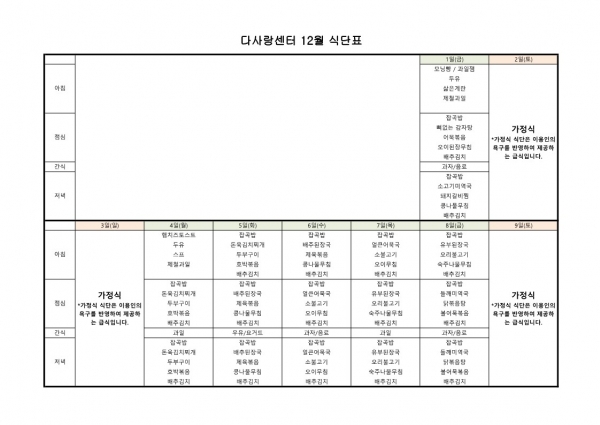 23년 12월 식단표