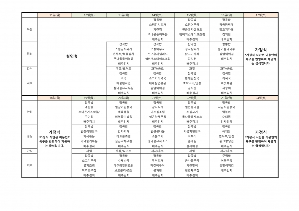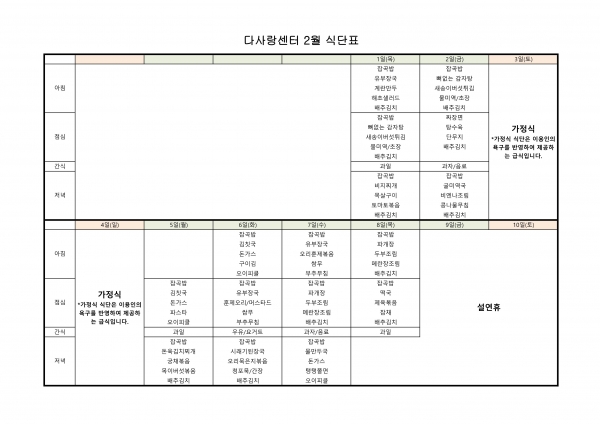 24년 2월 식단표