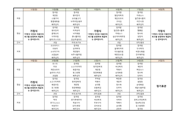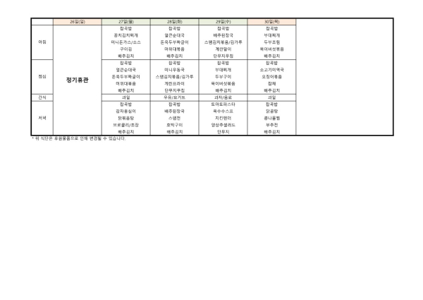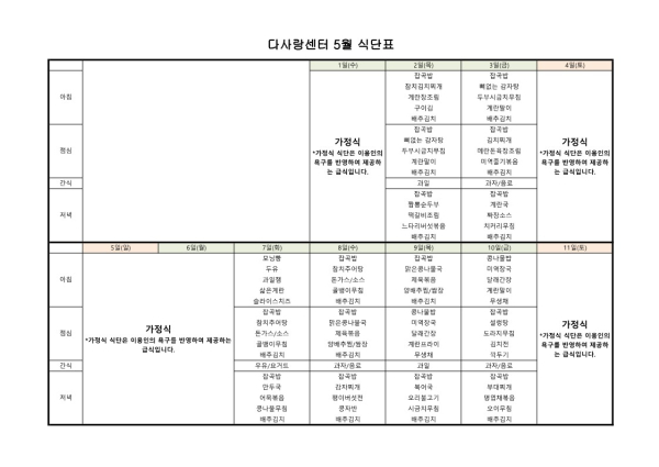 24년 5월 식단표