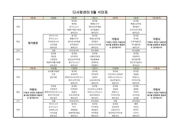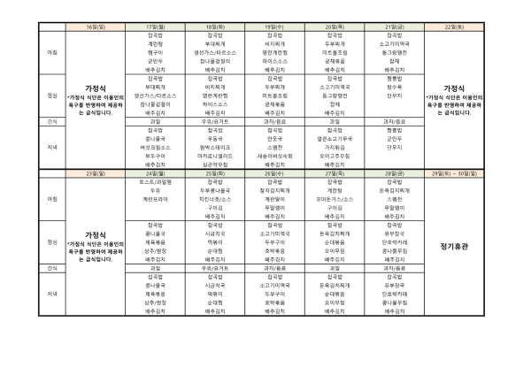24년 6월 식단표