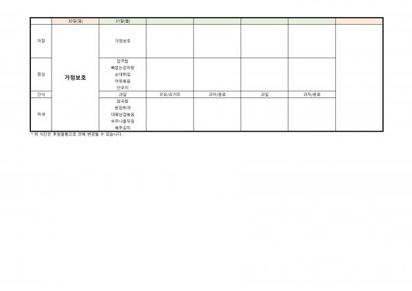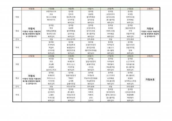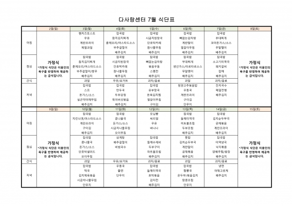23년 7월 식단표
