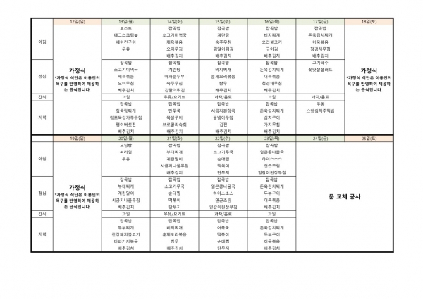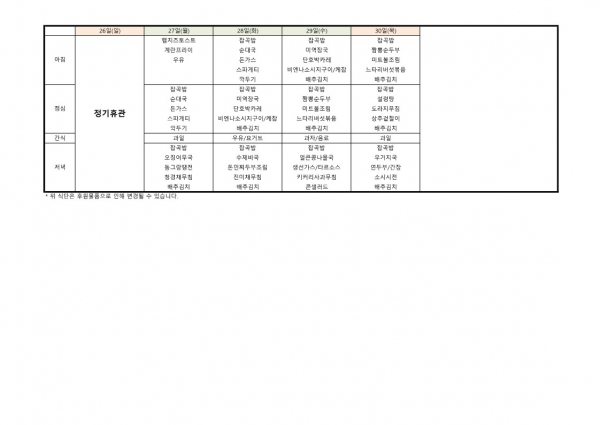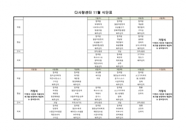 23년 11월 식단표