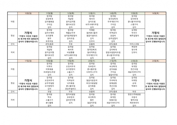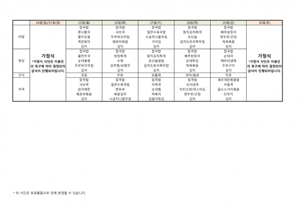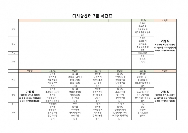 22년 7월 식단표