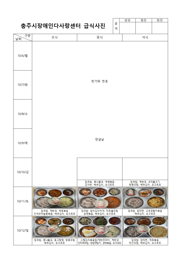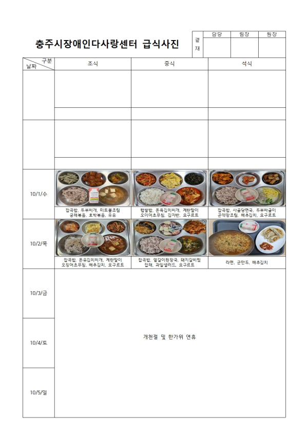 2025년 10월 급식사진
