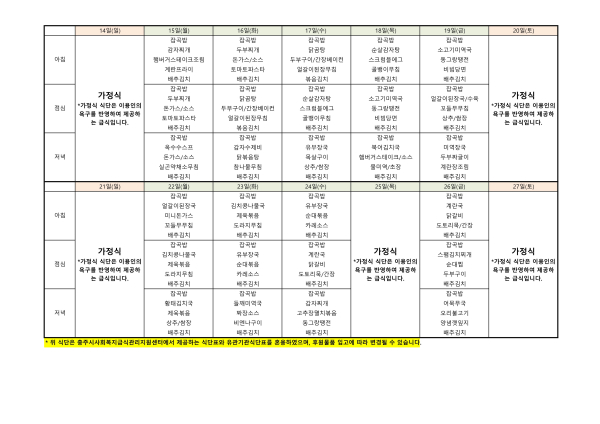 2025년 12월 식단표