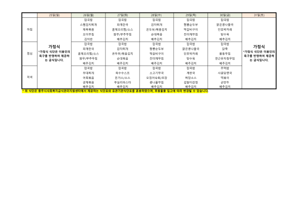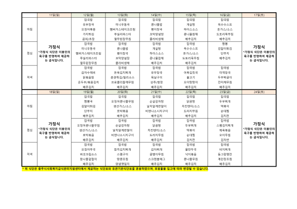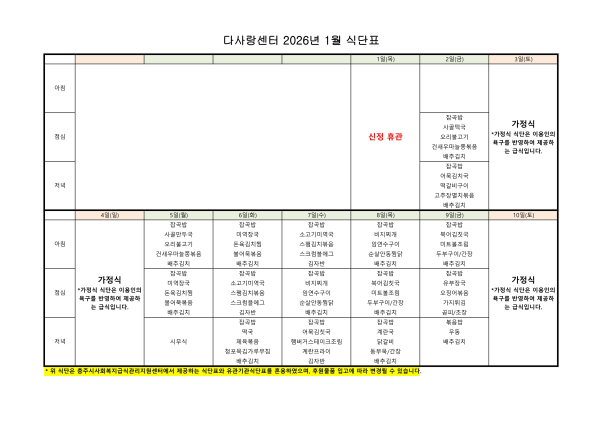 2026년 1월 식단표