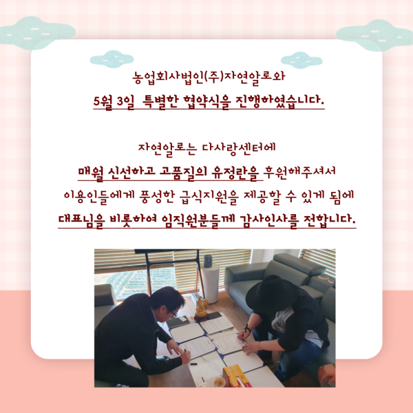(주)자연알로, 충주시장애인다사랑센터와 협약 페이지 정보 작성자 이하영 작성일24-05-03 18:21 조회1,017회 댓글0건 관련링크 본문 댓글목록 등록된 댓글이 없습니다. 이전글 다음글 목록