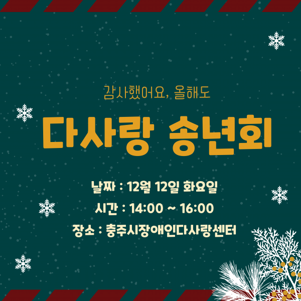 12월 12일 충주시장애인다사랑센터에서 다사랑 송년회를 실시하였습니다.