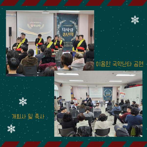 행사는 이용인들의 국악 난타 공연을 시작으로 송년회의 시작을 알렸고,
