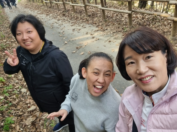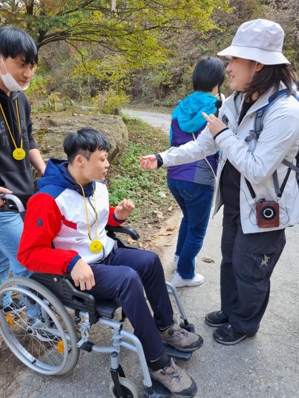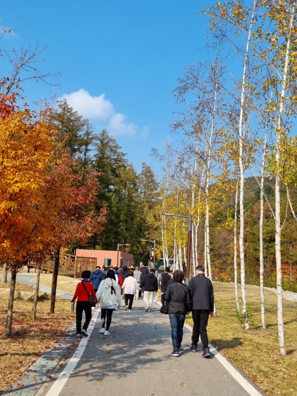2023.10.24. ~ 25.(1박 2일 숲체험캠프) 페이지 정보 작성자 이하영 작성일23-10-27 12:39 조회1,283회 댓글0건 관련링크 본문 이번 숲체험 캠프는 국립춘천숲체원과 연계하여 자연과 함께 할 수 있는 캠프 프로그램으로 진행하였다. 춘천에 도착해 맛있는 식사를 하고 자연을 배경 삼아 하이킹을 즐기고 공예활동으로 자신만의 하바리움을 만들어보았으며 저녁시간에는 레크리에이션 시간을 통해 게임을 즐기고 상품을 받으며 이용인들이 즐거워하는 시간을 보냈다. 이틀째에는 다 함께 플라잉디스크 활동을 하면서 일정을 마무리하였다 댓글목록 등록된 댓글이 없습니다. 이전글 다음글 목록