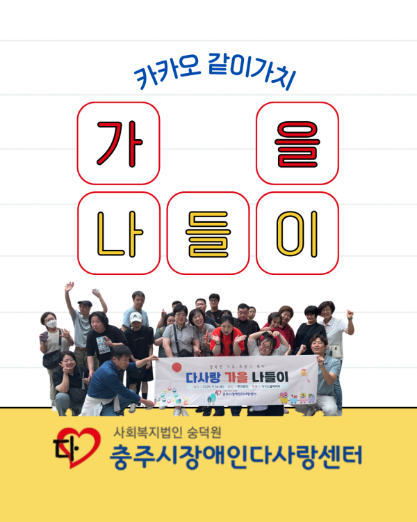다사랑 가을나들이 - 카카오 같이가치 페이지 정보 작성자 류지연 작성일25-10-10 22:37 조회513회 댓글0건 관련링크 본문 댓글목록 등록된 댓글이 없습니다. 이전글 다음글 목록