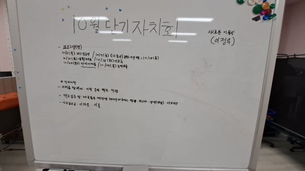 2022.10.07 단기 자치회 페이지 정보 작성자 이재호 작성일22-10-10 13:16 조회1,089회 댓글0건 관련링크 본문 2022.10.07 단기 자치회 댓글목록 등록된 댓글이 없습니다. 이전글 다음글 목록