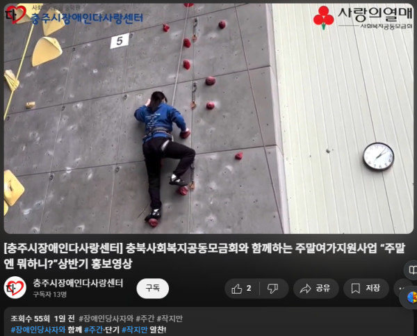 충주시장애인다사랑센터, 충북사회복지공동모금회 신청사업 "주말엔 뭐하니" 홍보 영상 페이지 정보 작성자 관리자 작성일25-05-22 12:45 조회564회 댓글0건 관련링크 본문 유튜브 영상 댓글목록 등록된 댓글이 없습니다. 이전글 다음글 목록