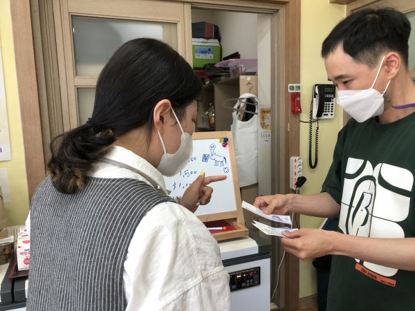 2022.05.10 금전교육 페이지 정보 작성자 이재호 작성일22-05-15 01:51 조회1,121회 댓글0건 관련링크 본문 센터 내에서 먹을 간식을 모형 화폐를 이용해 구입해보았습니다. ^^ 다음에는 직접 밖으로 나가 간식을 구입해보겠습니다. ^^ 댓글목록 등록된 댓글이 없습니다. 이전글 다음글 목록