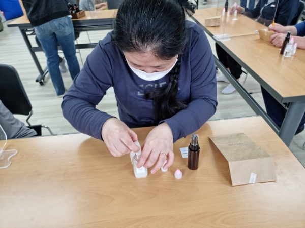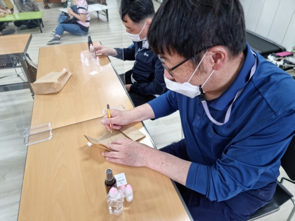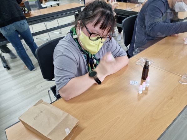 2022. 05. 18. 화장품만들기 페이지 정보 작성자 최인규 작성일22-05-18 18:59 조회1,106회 댓글0건 관련링크 본문 2022. 05. 18. 화장품만들기이용인들과 함께 다양한 향을 이용해 헤어에센스를 만들어보았습니다. 댓글목록 등록된 댓글이 없습니다. 이전글 다음글 목록