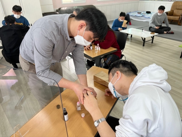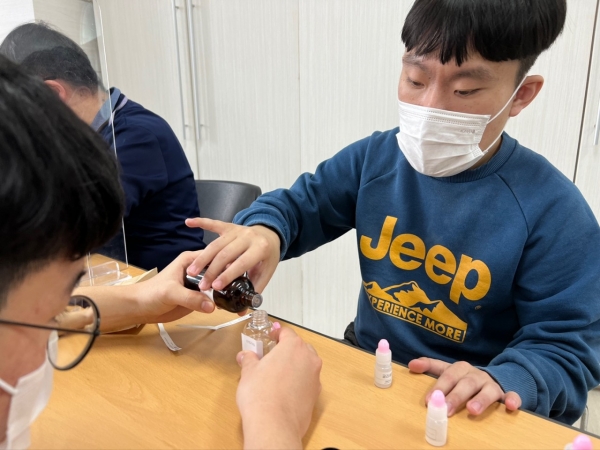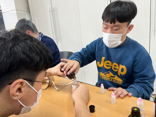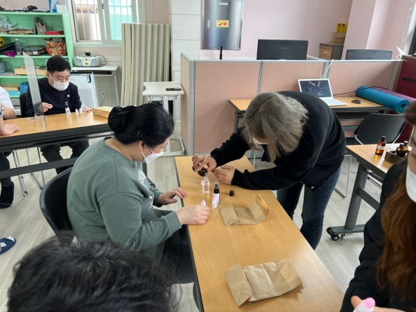 2022. 03. 23. 화장품 만들기 페이지 정보 작성자 이하영 작성일22-03-23 17:14 조회1,121회 댓글0건 관련링크 본문 금일 화장품 만들기를 진행해보았습니다.천연 화장품으로 만드는 것이라서 재료를 아로마 오일을 사용하였습니다.레몬, 페퍼민트, 시더우드, 라벤더 등의 향을 맡으면서본인의 색과 좋아하는 향을 직접 찾아갈 수 있도록 지도하였습니다.다 만들고 난 후에는 집으로 가져가실 수 있도록 하였습니다. 댓글목록 등록된 댓글이 없습니다. 이전글 다음글 목록
