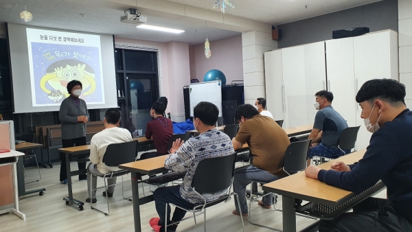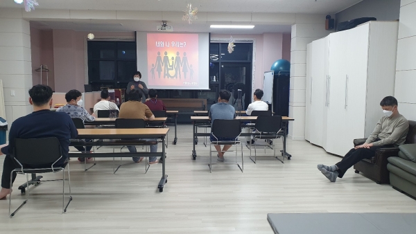 2022.02.15. 단기보호 성교육 페이지 정보 작성자 이재호 작성일22-02-15 20:23 조회1,112회 댓글0건 관련링크 본문 1분기 단기보호 이용인 성교육을 실시하였습니다. 퇴근 후 단기보호 이용인들이 다목적실에 모여 실시하였으며, '너와 나', '다름과 차이'를 중심으로 하여 인권을 알아보고 이에 따른 성교육을 실시하였습니다. 댓글목록 등록된 댓글이 없습니다. 이전글 다음글 목록