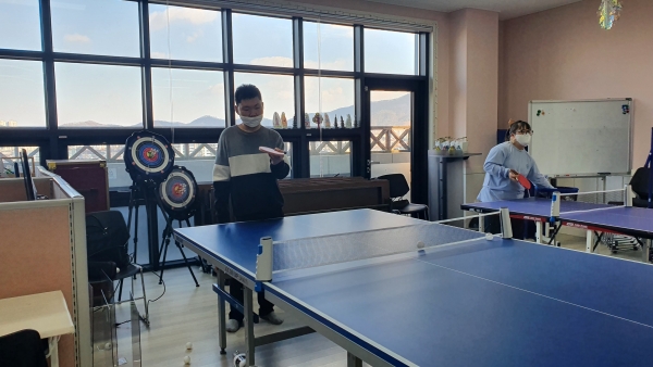 2022. 01. 13. 실내체육(탁구) 페이지 정보 작성자 이하영 작성일22-01-13 12:50 조회1,264회 댓글0건 관련링크 본문 생활체육으로 배웠던 탁구를 같이 해보았습니다. 선생님이 가르쳐주신대로 몸과 머리로 기억하여 움직여보았습니다. 댓글목록 등록된 댓글이 없습니다. 이전글 다음글 목록