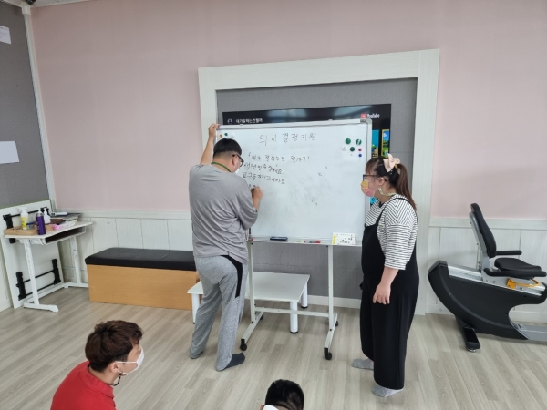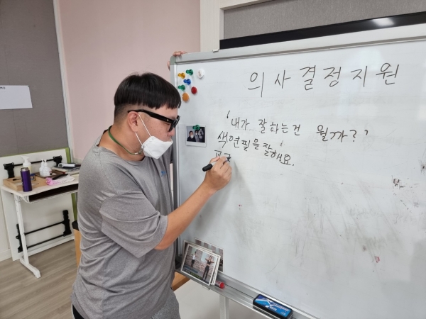 2021. 07. 05. 의사결정지원 페이지 정보 작성자 이하영 작성일21-07-05 17:59 조회1,832회 댓글0건 관련링크 본문 의사결정지원을 진행하였습니다.내가 잘하는 것은 무엇인가?를 논의해보았습니다.센터 내에서 이용인들이 같이 생각을 하면서 적어보았습니다.다사랑 이용인들 멋지지 않나요?^^ 댓글목록 등록된 댓글이 없습니다. 이전글 다음글 목록