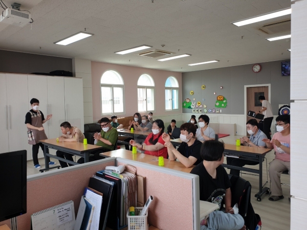2021. 07. 06. 컵타 페이지 정보 작성자 이하영 작성일21-07-06 17:26 조회1,970회 댓글0건 관련링크 본문 컵타 프로그램을 실시하였습니다.음악에 맞추어 읍, 피, 바, 라 동작을 익혀 수행하였습니다.이제는 선생님이 안해주셔도 동작을 하시는 다사랑 이용인들 대단해요^^ 댓글목록 등록된 댓글이 없습니다. 이전글 다음글 목록