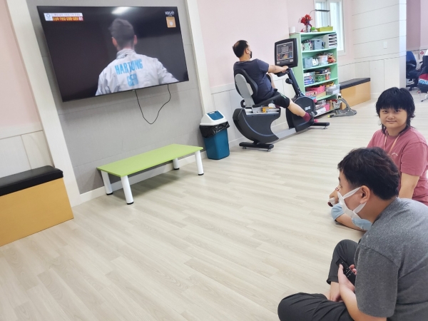 2021. 07. 28. (수) 개별서비스지원 페이지 정보 작성자 이하영 작성일21-07-29 10:16 조회1,657회 댓글0건 관련링크 본문 개별서비스지원 프로그램을 진행하였습니다.올림픽을 보며 같이 신나게 응원도 하고 대한민국 파이팅!! 이라는 소리도 외쳐보았습니다.그 외에도 자전거타기, 그림그리기, 짐볼사용하여 운동하기, 책읽기, 촉감놀이 피아노치기를 해보았습니다. 댓글목록 등록된 댓글이 없습니다. 이전글 다음글 목록