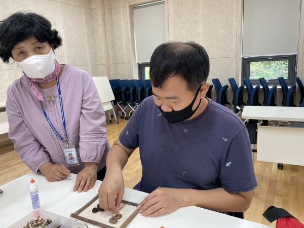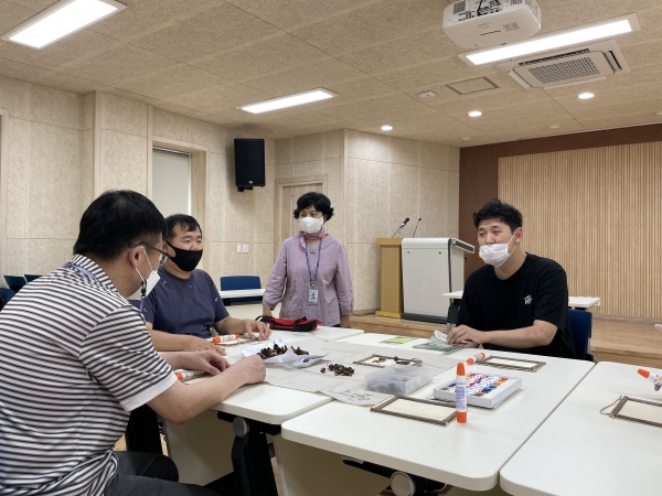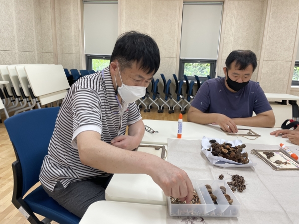 2021. 07. 30. 치유의 숲체험 페이지 정보 작성자 이하영 작성일21-07-30 15:25 조회1,784회 댓글0건 관련링크 본문 산림복지 치유의 숲 체험을 진행하였습니다.오늘은 자연물을 활용하여 액자를 만들어보았습니다.다양한 모양으로 만들어본 이용인들 멋져요^^다 만들고 난 뒤에는 신체 활동으로 배구시합도 해보았습니다.마지막 시간에는 편백나무 온열치유실로 이동하여 명상 또는아로마(편백나무향 호호바오일) 테라피를 진행하였습니다.마지막으로 이용인들의 소감도 들어보았습니다.이종건 : 액자를 만들어서 좋았어요.한흥용 : 아로마 테라피 활동으로 피곤이 싹 가신 것 같아요.김종우 : 명상 시간 좋았어요.김종명 : 오늘 한 프로그램들 다 좋았어요. 댓글목록 등록된 댓글이 없습니다. 이전글 다음글 목록