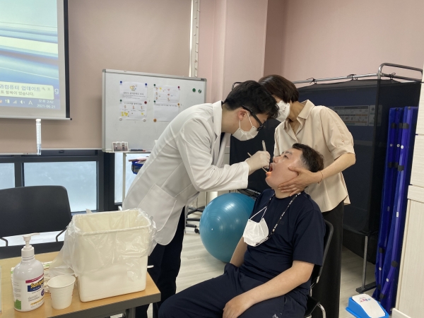 2021. 06. 21. 구강교육 및 검진 페이지 정보 작성자 이하영 작성일21-06-21 15:16 조회2,011회 댓글0건 관련링크 본문 구강교육 및 검진을 진행하였습니다.칫솔 올바르게 닦기, 치주염, 치석제거에 대해 설명하고 이가 시렸을 때는 어떻게 해야되는지에 대한 교육도 해주셨습니다.구강검진 시에는 충치, 치석제거(유,무)를 검진하였습니다.진단 후 추후 보건소로 이동하여 치료할 예정입니다^^ 댓글목록 등록된 댓글이 없습니다. 이전글 다음글 목록