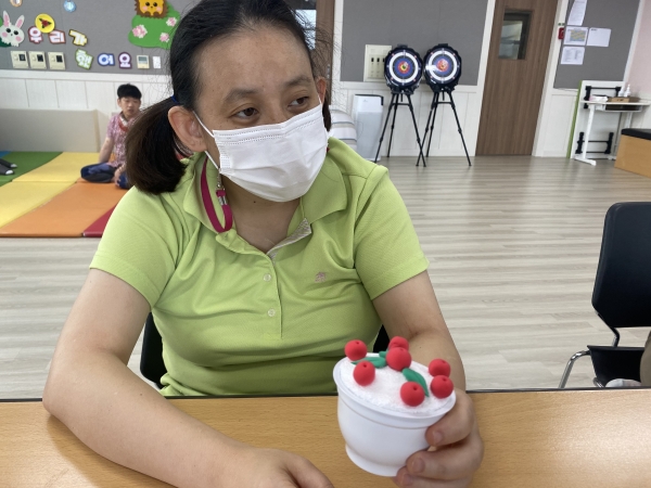 2021. 06. 25. 클레이공예 페이지 정보 작성자 이하영 작성일21-06-25 16:48 조회1,856회 댓글0건 관련링크 본문 클레이공예 수업을 진행하였습니다.골판지를 이용하여 나비를 만들었으며, 클레이를 이용하여 체리 컵 케이크를 만들었습니다.숫자도 세어가며 동그란 모양, 물방울 모양으로 만들어 나만의 작품을 만들어보았는데요!!너무 예쁘게 만든 다사랑 이용인들 너무 고생많으셨어요!^^ 댓글목록 등록된 댓글이 없습니다. 이전글 다음글 목록
