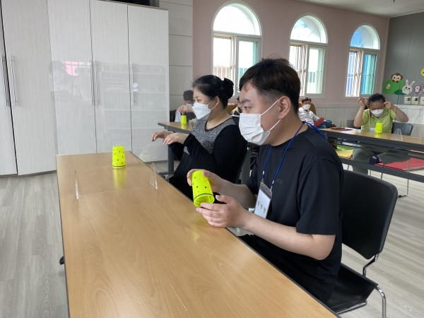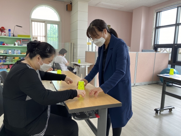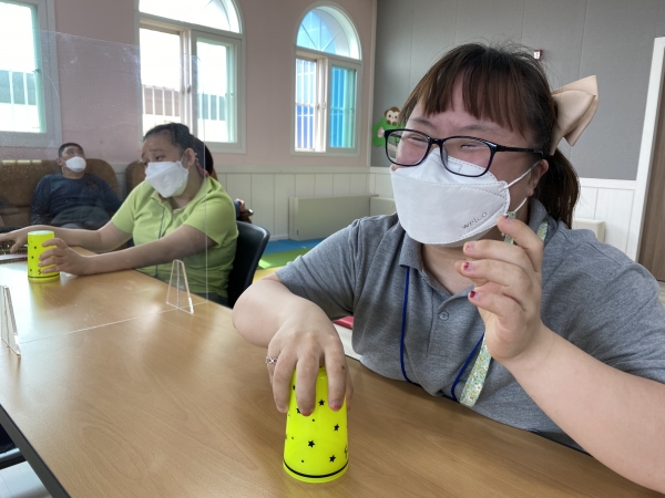 2021. 06. 01. 컵타교실 페이지 정보 작성자 이하영 작성일21-06-03 10:48 조회1,991회 댓글0건 관련링크 본문 충주시평생학습관과 연계하여 컵타 프로그램을 진행하였습니다. 음악에 맞추어 읍, 피, 바, 라 동작을 익혀 수행하는 우리 다사랑센터 이용인들 점점 실력이 늘어가는 것이 보이네요^^ 댓글목록 등록된 댓글이 없습니다. 이전글 다음글 목록