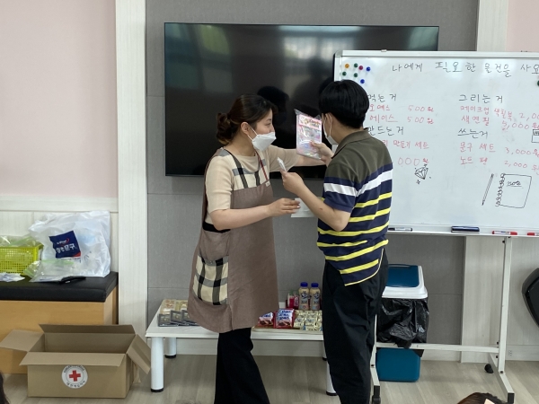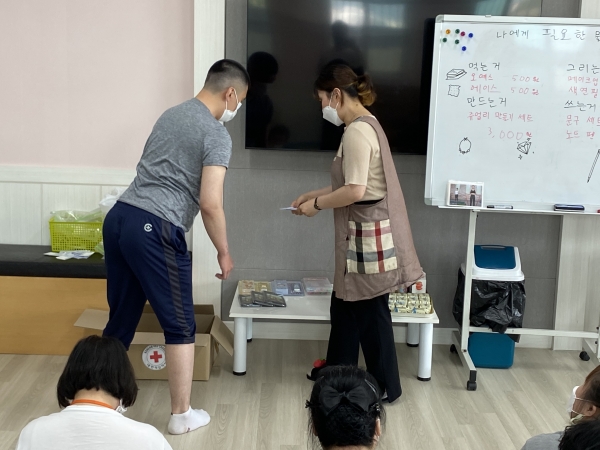 2021. 06. 01. 금전교육 페이지 정보 작성자 이하영 작성일21-06-03 10:51 조회2,054회 댓글0건 관련링크 본문 금전교육을 실시하였습니다. 이용인들의 욕구사항을 반영하여 물건을 구입하였습니다.금액에 알맞은 화폐로 교환하는 방법을 교육하였습니다. 댓글목록 등록된 댓글이 없습니다. 이전글 다음글 목록