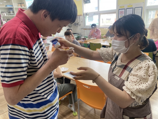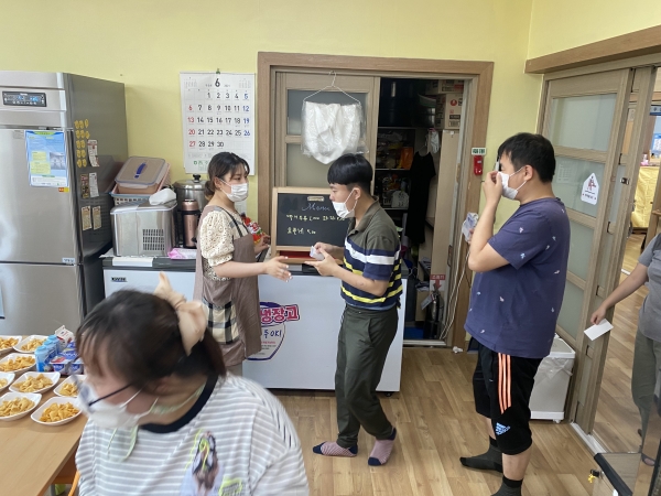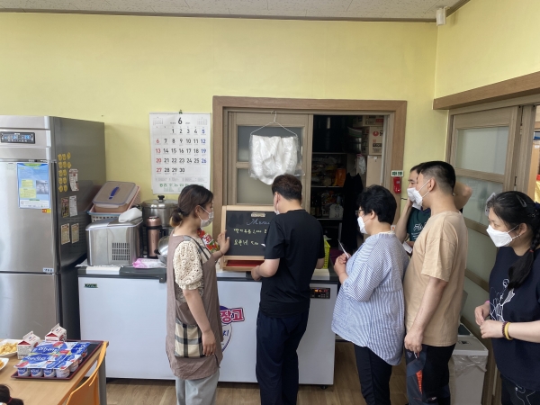 2021. 06. 08. 금전교육 페이지 정보 작성자 이하영 작성일21-06-08 16:50 조회1,981회 댓글0건 관련링크 본문 금전교육을 실시하였습니다.이제는 제법 지폐에 대한 인식이 되어있는 다사랑 이용인들입니다.메뉴판에 써져 있는 금액을 보며 지출할 수 있는 모습들을 보니 이제는 밖으로 나가서 직접 결재를 해볼 수 있겠네요^^ 댓글목록 등록된 댓글이 없습니다. 이전글 다음글 목록