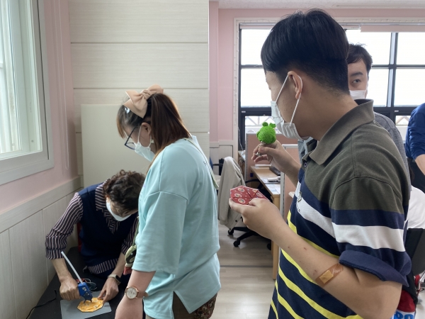 2021. 06. 11. 클레이공예 페이지 정보 작성자 이하영 작성일21-06-11 16:30 조회1,706회 댓글0건 관련링크 본문 클레이공예 프로그램에 참여하였습니다.개구리 모형과 예쁜 거울을 만들어보았습니다.손, 눈의 협응능력이 필요한 작업이다보니 열심히 만들려고 하는 다사랑 이용인들이예요^^완성한 물품들도 너무 예쁘죠? ^^ 댓글목록 등록된 댓글이 없습니다. 이전글 다음글 목록