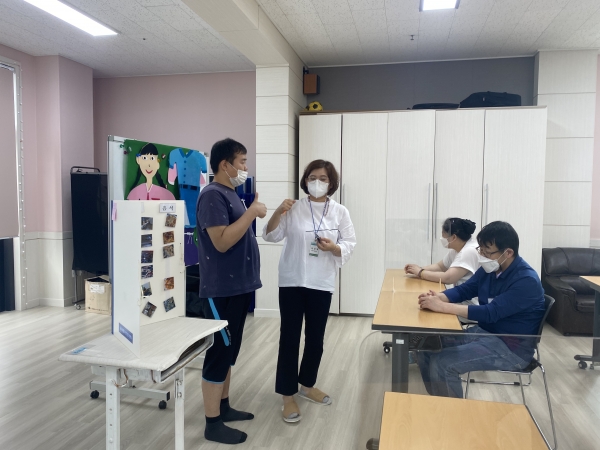 2021. 06. 14. 성교육 페이지 정보 작성자 이하영 작성일21-06-14 11:32 조회1,829회 댓글0건 관련링크 본문 성교육 프로그램을 진행하였습니다.충주성문화센터와 연계하여 이용인들에게 보다 더 나은 성에 대한 전문적인 교육을 진행해주셨습니다.이용인이 알기 쉽게 전달해주셨으며, 본인 자신이 중요하다는 것을 깨닫고 자신이 원하는 과일, 채소, 취미활동, 음식, 색 등을 선택할 수 있었습니다.또한 본인이 입고 싶은 옷을 선택하여 인형에게 옷을 입혀주기도 하였습니다. 댓글목록 등록된 댓글이 없습니다. 이전글 다음글 목록