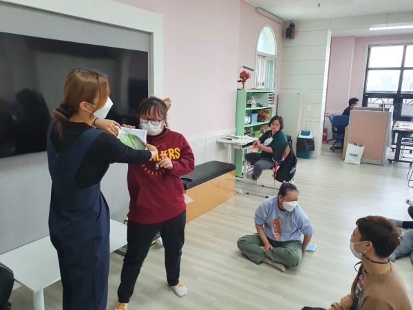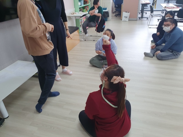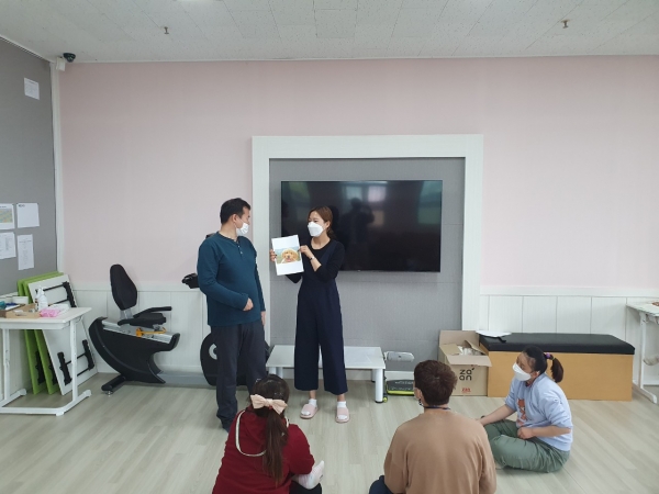 2021. 04. 27. 의사결정지원 페이지 정보 작성자 석가현 작성일21-05-21 11:16 조회1,991회 댓글0건 관련링크 본문 오늘의 의사결정지원 프로그램 주제는 동물, 사물, 음식을 보고 표현하기 입니다.연습으로 동물, 사물, 음식의 특징에 대해 이야기를 해보는시간을 가졌습니다.연습이 끝나고 한명씩 몸 또는 소리를 이용해 문제를 내고,문제를 맞춰보며 즐거운 게임을 해보았습니다. 댓글목록 등록된 댓글이 없습니다. 이전글 다음글 목록
