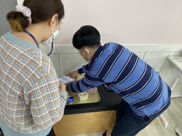 2021. 04. 27. 금전교육 페이지 정보 작성자 이하영 작성일21-05-21 11:53 조회1,874회 댓글0건 관련링크 본문 2021년 04월 27일금전교육을 실시하였습니다.떡, 과자, 요구르트, 음료 등을 구입하기 위해서는 가상화폐를 사용하였습니다.본인이 먹고 싶은 간식을 골라 가격에 맞게 구입할 수 있는 연습을 하였습니다. 댓글목록 등록된 댓글이 없습니다. 이전글 다음글 목록