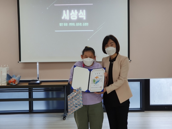- 시상 /법인표창상 - 김경현 자원봉사자, 김미경(윤홍인 어머니),