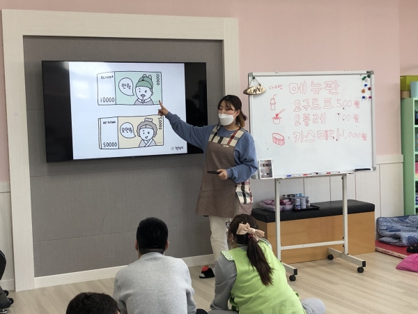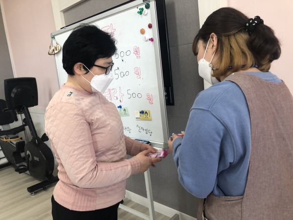2021. 03. 16. 금전교육 페이지 정보 작성자 이하영 작성일21-05-21 12:36 조회1,805회 댓글0건 관련링크 본문 2021년 03월 16일금전교육을 실시하였습니다.1,000원으로 요구르트, 요플레, 카스타드를 구입하여 간식으로 섭취할 수 있도록 하였습니다.센터 내에서 이용인분들이 화폐에 금액을 알아보았으며,화폐 안에 있는 인물에 대해서도 공부하였습니다^^ 댓글목록 등록된 댓글이 없습니다. 이전글 다음글 목록