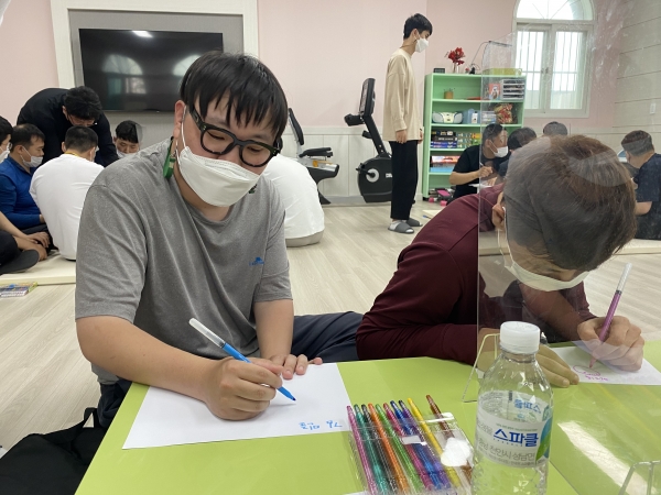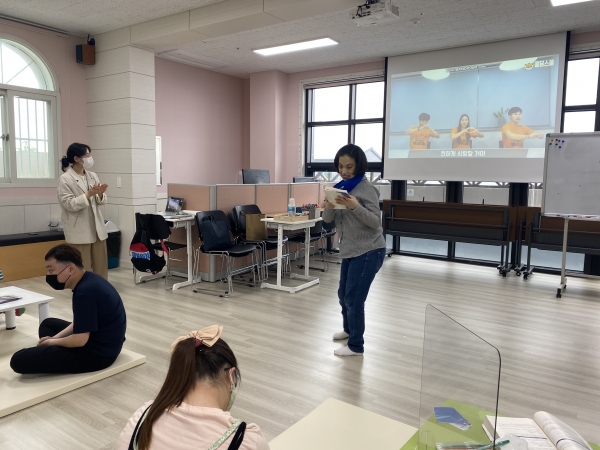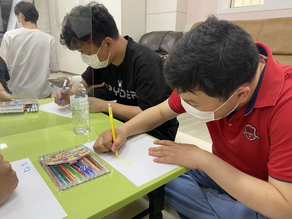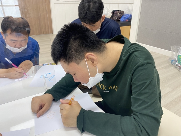2021. 05. 17. 인권교육 페이지 정보 작성자 이하영 작성일21-05-21 09:07 조회1,914회 댓글0건 관련링크 본문 2021. 05. 17. 인권교육을 실시하였습니다.충청북도장애인종합복지관에 계시는 인권 강사님을 초청하여 진행하였습니다.자신을 소개하는 시간도 가져보았습니다.좋아하는 것, 관심있는 것, 나를 위해 지켜주세요 등을 적어보고 앞으로 나가 이야기할 수 있는 시간도 가져보았습니다.다사랑센터 모든 이용인들의 인권은 소중하고 존중해주어야 된다는 강사 선생님의 말씀에 실천해보는 다사랑센터 사람들이 되어보기로 다짐하였습니다. 댓글목록 등록된 댓글이 없습니다. 이전글 다음글 목록