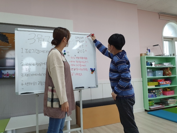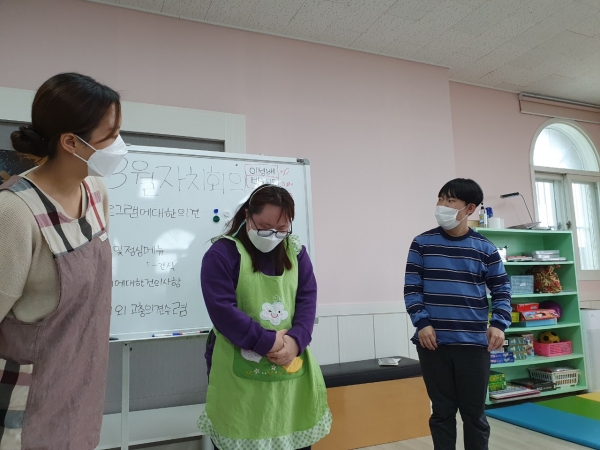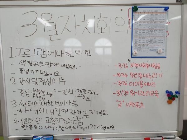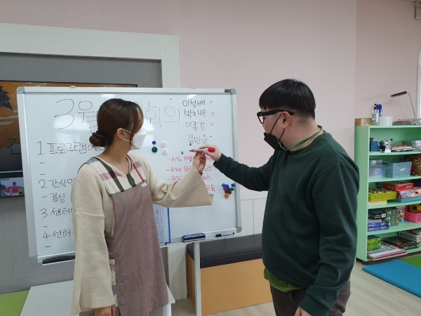 다음으로, 21년도 주간 이용인 회장, 부회장을 투표결과 주간 회장 박채은씨, 주간 부회장 이성배씨가 당선 되었습니다. 앞으로 주간보호 이용인 대표로써 멋진 리더의 모습을 기대해 봅니다~^^♡