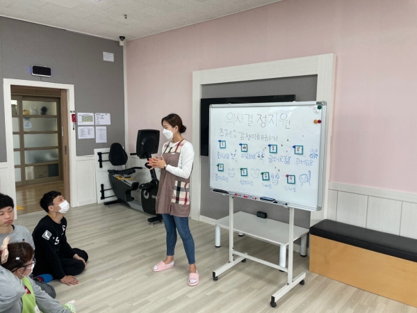 2021. 03. 05. 의사결정지원 페이지 정보 작성자 석가현 작성일21-05-21 10:49 조회1,892회 댓글0건 관련링크 본문 감정표현을 이해하고 표현할 수 있도록나의 감정을 생각해보고 발표해보는 시간을 가져보았습니다.마스크 착용으로 서로의 표정을 읽는것에 애로사항이 있었지만최선을 다해 표정을 표현해 보았습니다.^^*다양한 표정게임으로 수업의 흥미를 높혀주었습니다. 댓글목록 등록된 댓글이 없습니다. 이전글 다음글 목록